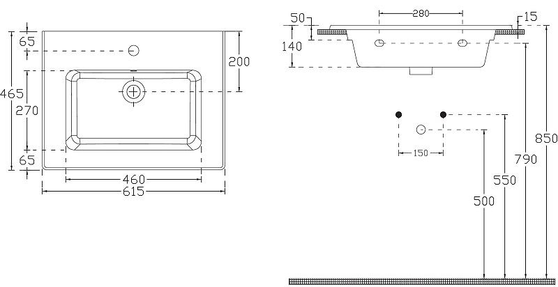 • Отверстия под смеситель: