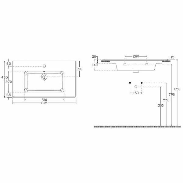 Отверстия под смеситель: 1.