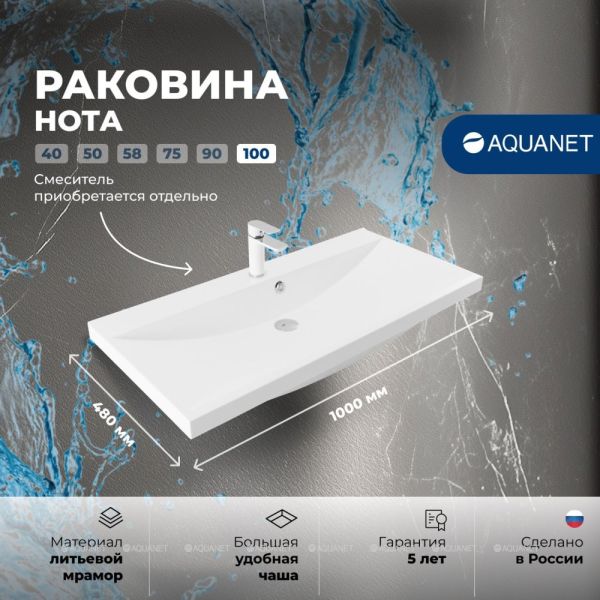 Раковина для мебели Aquanet Нота 90 от производителя AQUANET.Мраморный материал эстетически прив... Подробнее
