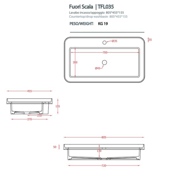 Раковина ArtCeram Fuori Scala TFL035 41 00 *1 80.5 смArtceram FUORI SCALA Раковина встраиваемая, 80х45см, c 1 отв под смеситель, без перелива, цвет: matera