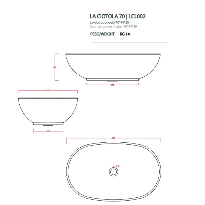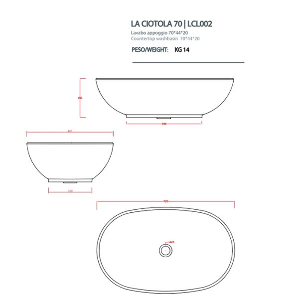 Раковина ArtCeram LA CIOTOLA LCL002 01 00 белая 70 смArtCeram La Ciotola LCL002 01 00 Раковина накладная, без перелива, без плоскости под смеситель. Размер 70х44х20 см. Монтаж смесителя на столешницу или со стены. Установка раковины на столешницу или на мебельную консоль (заказывать дополнительно). Цв. белый глянцевый.