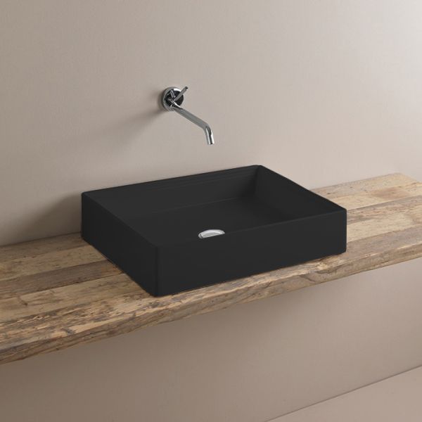 ArtCeram Scalino SCL002 17 00 Раковина накладная, размер 55х38х12 см. Без перелива и плоскости под смеситель. Монтаж накладной на столешницу. Цвет черный матовый.