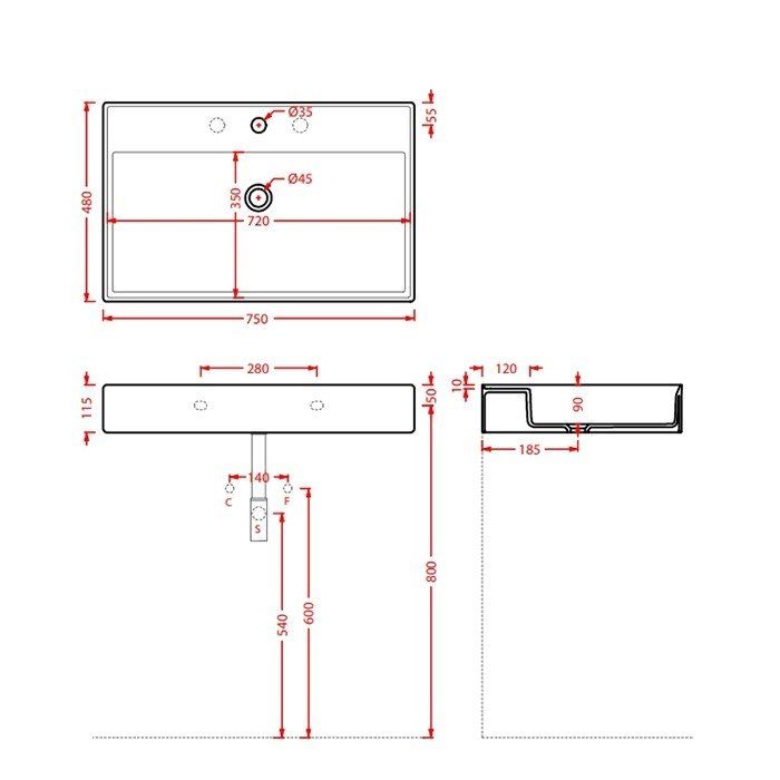 • Отверстия под смеситель: