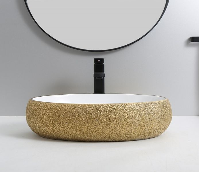 Раковина CeramaLux 433J бело-золотая 49 смПодходит для ванных комнат различной планировки в современном стиле и отличается стильной и изящной формой.Материал: санфаянс.В комплекте поставки: раковина.