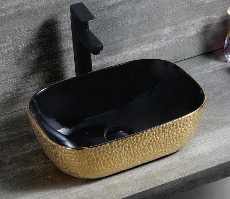 Раковина CeramaLux D1333H022 черно-золотая 46 см купить