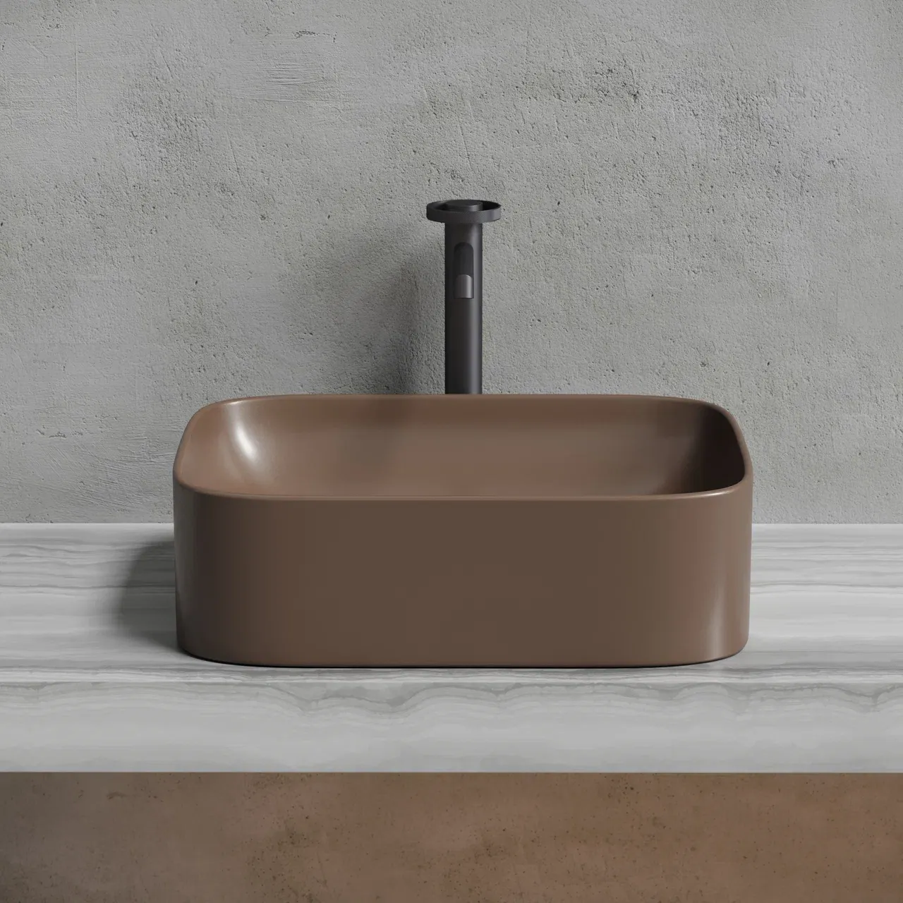 Умывальник чаша накладная прямоугольная (цвет Темно-Коричневый Матовый) Element 505*380*150мм