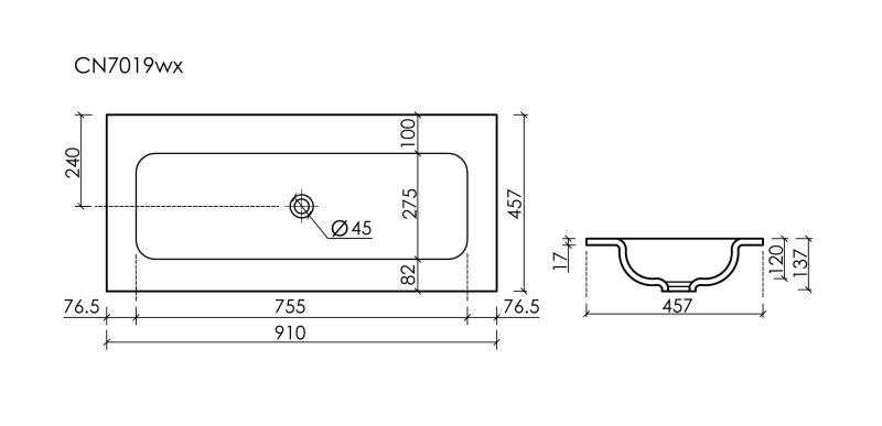 - Коллекция Grace. Размер 910x457x137мм, без отверстия под смеситель.