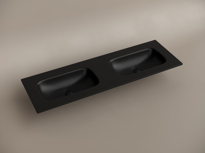 Раковина накладная мебельная CERAMICANOVA Grace прямоугольная 1410x457x137 мм, с двумя чашами без отверстий под смеситель, цвет черный матовый, CN7022MBwx