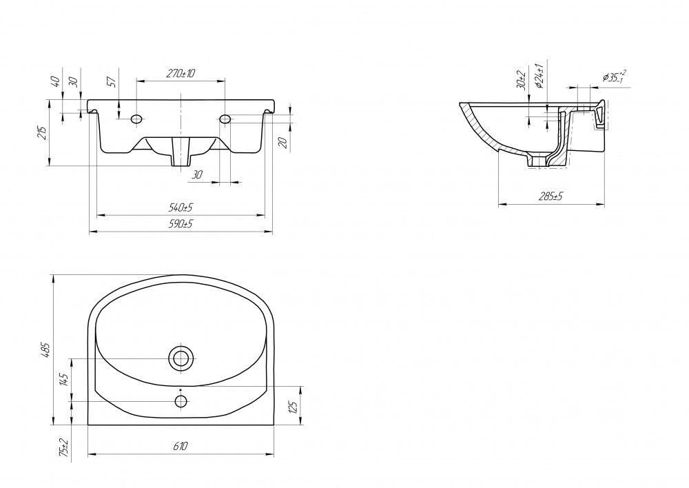 Мебельная раковина ERICA с отверстием под смеситель, размером 61 см.