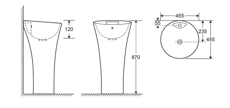 Материал: стекловидный фарфорСтильная напольная раковина станет изысканным дополнением в современном оформлении просторной ванной комнаты. Модель скрывает коммуникации, размер и глубина чаши позволяют с комфортом проводить водные процедуры.Достоинства раковины:Продолжительный срок службы за счет особого обжига и покрытия качественной глазурью.Раковины не прихотливы в уходе. Для поддержания белоснежного цвета достаточно чистить изделие раз в неделю или по мере загрязнения. Используйте чистящие средства, НЕ содержащие хлор, кислоты и энзимные средства.Пластичность материала позволяет изготавливать сантехнику разнообразных форм, поэтому напольные раковины представлены в разных дизайнерских решениях.Стекловидный фарфор - вид эмали, которой покрывают изделия. Обозначает керамику с высочайшим коэффициентом плотности, которая имеет идеально гладкую поверхность. Модели, с покрытием из стекловидной эмали, надежно защищены не только от влаги или загрязнений, но и от бактерий. В процессе производства данный состав проходит этап такого просеивания частиц, которое обеспечивает максимальную плотность вещества. Обработка же происходит при очень высоких температурах. В итоге изделие, на которое нанесено покрытие из стекловидного фарфора имеет невероятно гладкую глянцевую поверхность, сквозь которую не проникает влага или грязь, а также бактерии. Кроме того, эта глазурь обладает высочайшей прочностью и защищает сантехнику от всевозможных повреждений, как механического характера, так и при воздействии бытовой химии, тем самым повышая долговечность и эстетичность продукта.