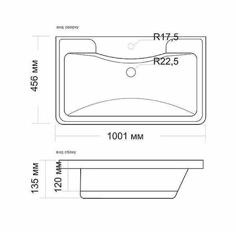 Размер (ШхВхГ): 1001х135х456 мм.