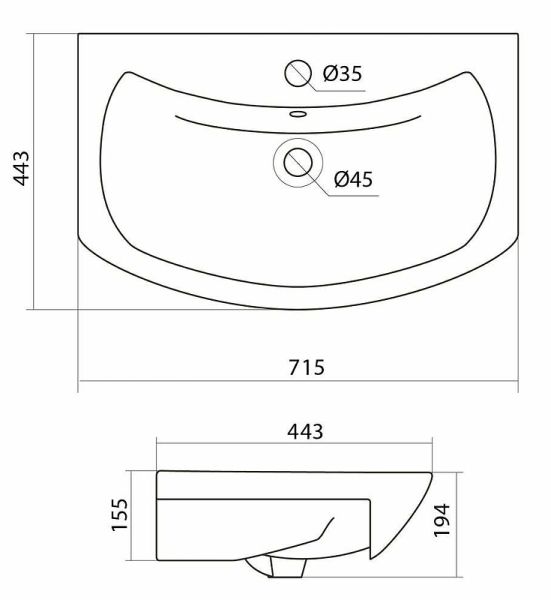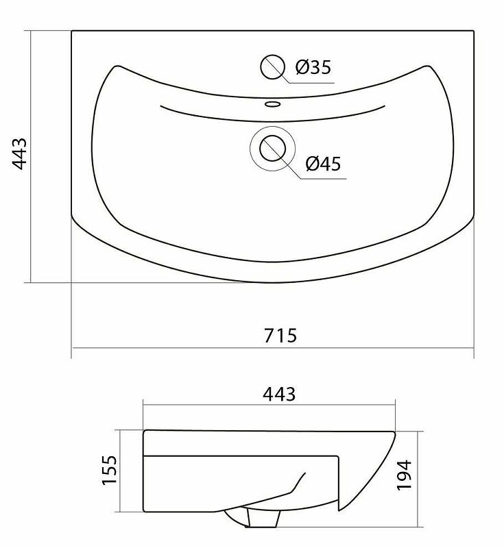 Размеры (ШхВхД): 715х194х443 мм.