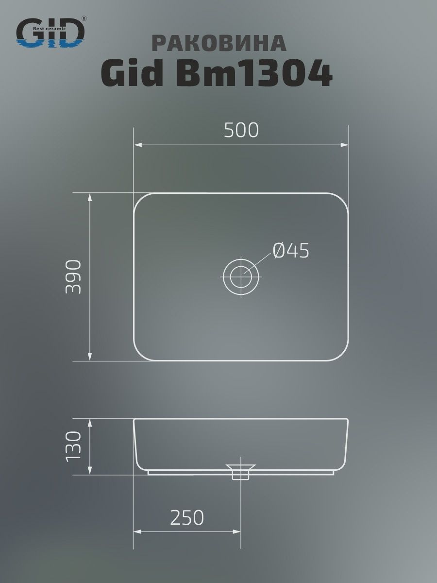Раковина Gid Bm1304 53350 накладная черная матовая 50x39x13 купить