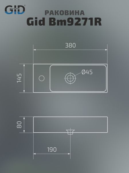 Раковина Gid Bm9271R 62202R подвесная черная матовая 38x14.5x8 купить