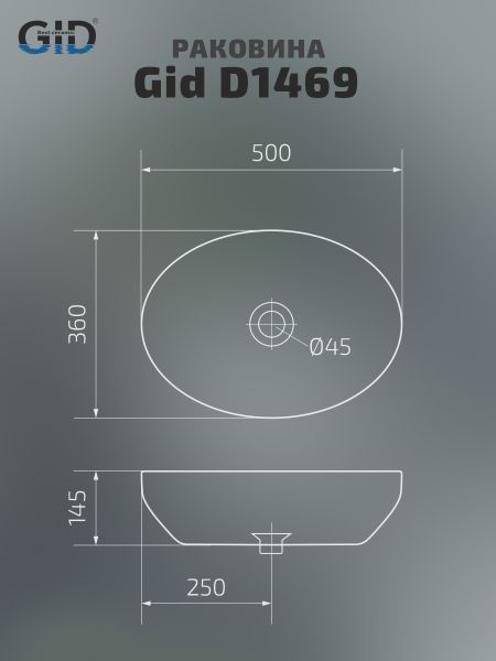 Раковина Gid D1469 51196 накладная белая 50x36x14.5 купить