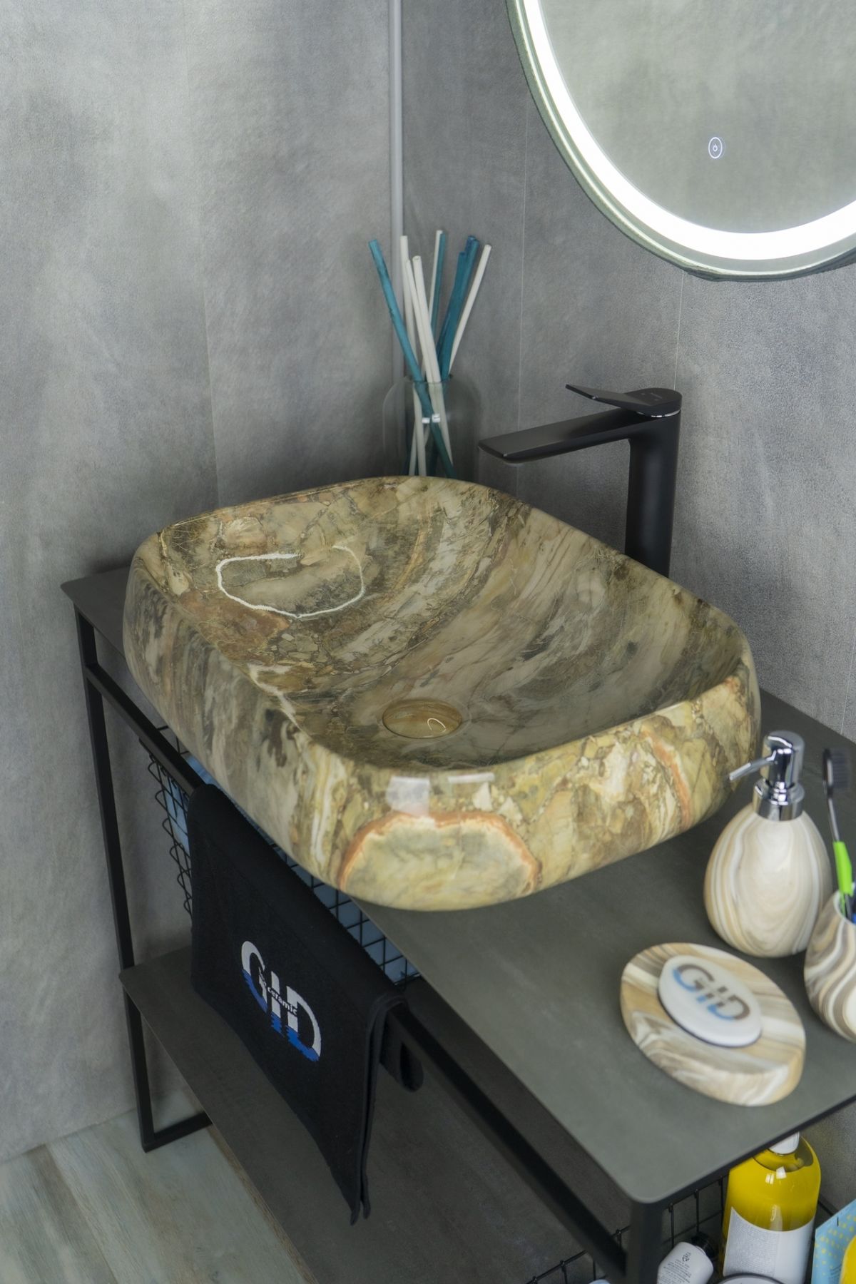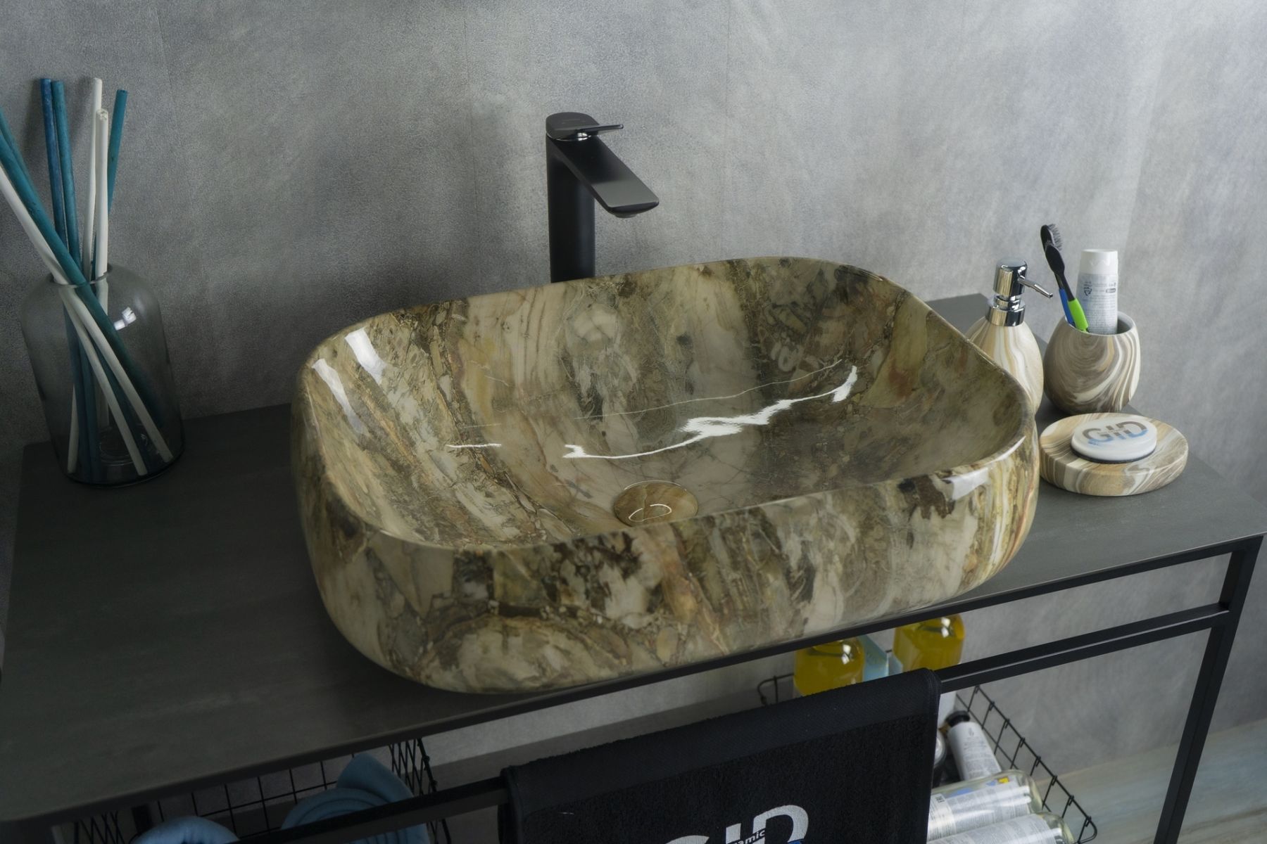 Серия Geometrico с прямоугольной формой: стиль и практичность с испанским качеством и европейскими стандартами. Раковина накладная GiD Mnc186 — элегантная модель, изготовленная из высококачественной керамики с глянцевой поверхностью, имитирующей текстуру натурального камня. Её изысканный дизайн и коричневые оттенки придают ванной комнате современный и утончённый вид. Раковина предназначена для установки на столешницу, что подчёркивает её стиль и функциональность. Модель не имеет отверстия под смеситель, что позволяет использовать различные варианты настенных или встраиваемых смесителей, предоставляя свободу в дизайне интерьера.
