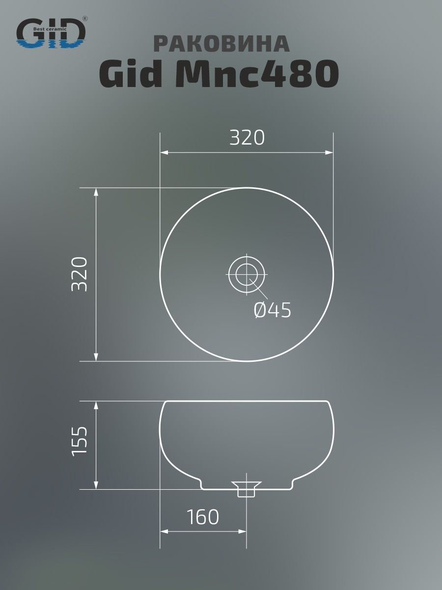 Раковина Gid Mnc480 54432 накладная под камень глянцевая 32x32x15.5 купить