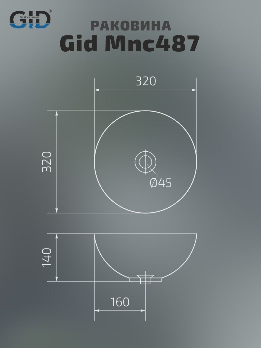 Раковина Gid Mnc487 54435 накладная под камень глянцевая 32x32x14 купить