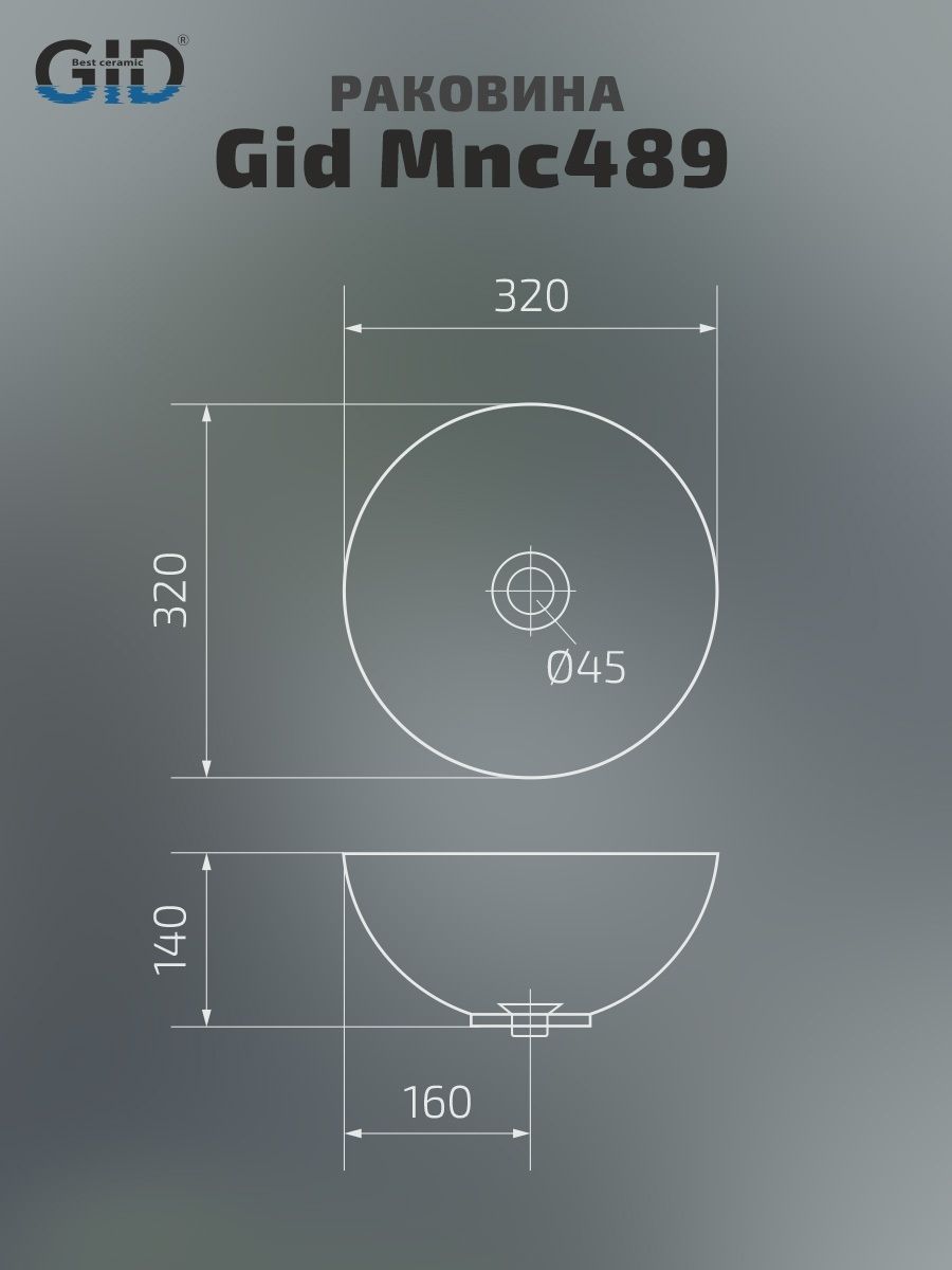 Раковина Gid Mnc489 54437 накладная под камень глянцевая 32x32x14 купить