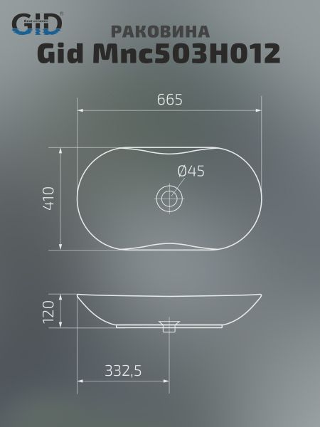 Раковина Gid Mnc503H012 54464 накладная под камень глянцевая 66.5x41x12 купить