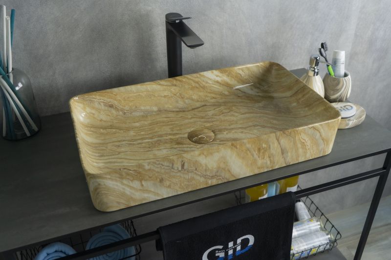 Серия Geometrico с прямоугольной формой: стиль и практичность с испанским качеством и европейскими стандартами. Раковина накладная GiD Mnc595— элегантная модель прямоугольной формы, изготовленная из высококачественной керамики с глянцевой поверхностью, создающей эффект натурального камня. Её строгий и современный дизайн идеально подойдёт для ванных комнат в минималистичном или современном стиле. Модель не имеет отверстия под смеситель, что позволяет использовать различные варианты настенных или встраиваемых смесителей, предоставляя свободу в дизайне интерьера. Раковина предназначена для установки на столешницу, подчёркивая стильный и функциональный интерьер ванной комнаты.