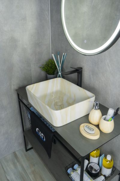 Серия Geometrico с прямоугольной формой: стиль и практичность с испанским качеством и европейскими стандартами. Раковина накладная GID Mnc600— элегантная модель прямоугольной формы, изготовленная из высококачественной керамики с глянцевой поверхностью, создающей эффект натурального камня. Её строгий и современный дизайн идеально подойдёт для ванных комнат в минималистичном или современном стиле. Модель не имеет отверстия под смеситель, что позволяет использовать различные варианты настенных или встраиваемых смесителей, предоставляя свободу в дизайне интерьера. Раковина предназначена для установки на столешницу, подчёркивая стильный и функциональный интерьер ванной комнаты.