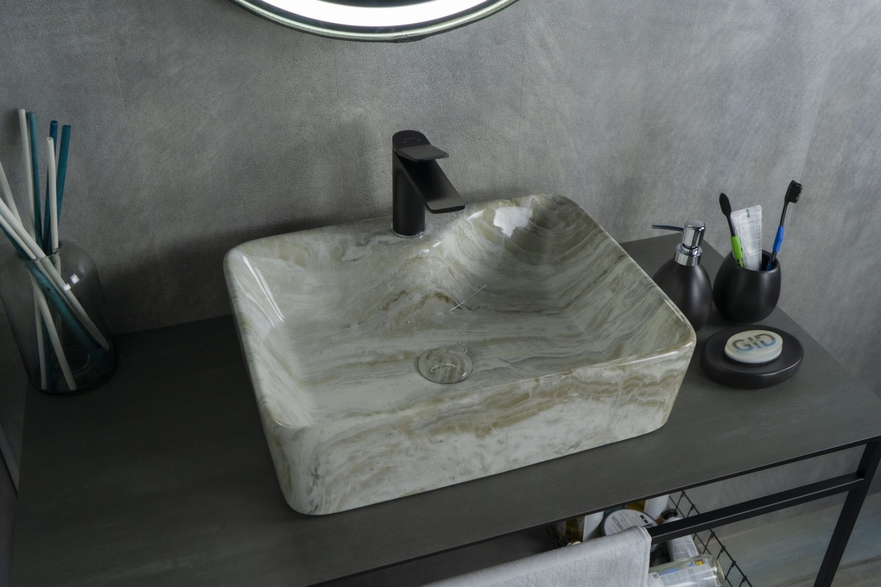 Серия Geometrico с прямоугольной формой: стиль и практичность с испанским качеством и европейскими стандартами. Раковина накладная GiD Mnc605 — стильная модель прямоугольной формы, изготовленная из высококачественной керамики с глянцевой поверхностью, имитирующей натуральный камень. Она оснащена отверстием для смесителя, что делает её практичным выбором для ванных комнат в любом стиле. Раковина предназначена для установки на столешницу или мебель, обеспечивая удобство монтажа и гармоничное сочетание с интерьером. Модель отличается долговечностью, простотой ухода и элегантным дизайном, что делает её отличным решением для создания комфортного и стильного