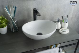 Серия Lago овальной формы — это испанское качество, соответствующее современным европейским требованиям. Накладная раковина GiD N900 — это изысканная модель, созданная для тех, кто ценит стиль и функциональность. Ее овальная форма с утонченными очертаниями придает интерьеру ванной комнаты легкость и гармоничность. Благодаря накладному монтажу раковина оптимально использует пространство столешницы, обеспечивая дополнительное место для аксессуаров. Раковина не имеет отверстия под смеситель и переливной системы, что подчеркивает ее минималистичный дизайн.