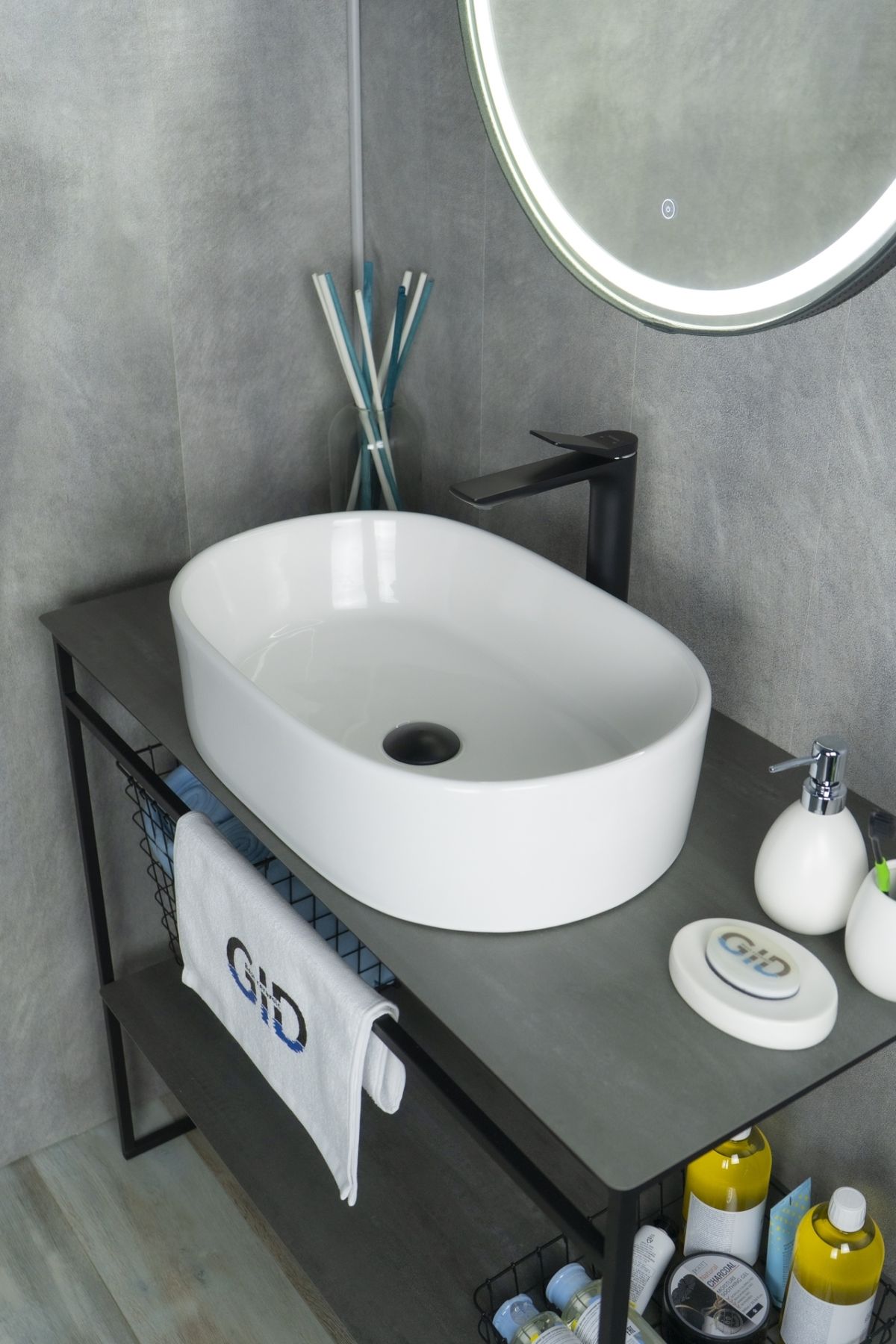 Серия Lago овальной формы — это испанское качество, соответствующее современным европейским требованиям. Накладная раковина GiD N9025 — сочетание элегантного дизайна и практичности для вашей ванной комнаты. Изготовлена из мелкопористой керамики с белым глянцевым покрытием, она придаст интерьеру свежесть и утонченность. Овальная форма обеспечивает оптимальное пространство для комфортного использования. Отсутствие отверстия под смеситель подчеркивает минималистичный стиль, а накладной способ монтажа на столешницу облегчает установку и позволяет создать современный облик ванной комнаты.