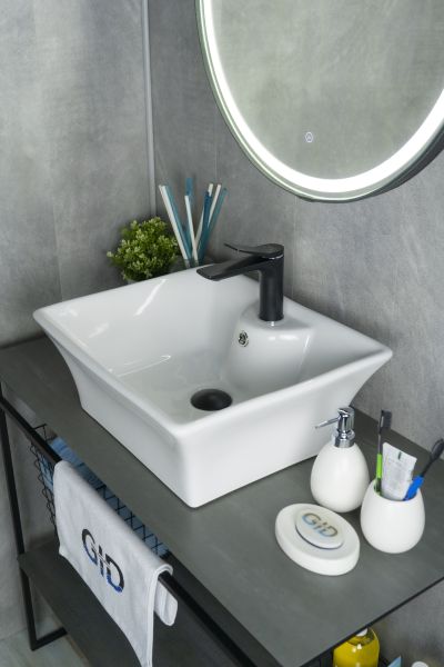 Серия Geometrico с прямоугольной формой: стиль и практичность с испанским качеством и европейскими стандартами. Раковина GiD N9108 - это стильная накладная раковина выполнена из высококачественной мелкопористой керамики с глянцевым покрытием, что обеспечивает долговечность и легкость в уходе. Прямоугольная форма придает ей современный и элегантный вид, а эргономичная чаша удобна для повседневного использования. Накладная конструкция позволяет легко установить раковину на столешнице, предоставляя дополнительное пространство вокруг. Оснащена отверстием под смеситель, что делает её удобным выбором для современной ванной комнаты.