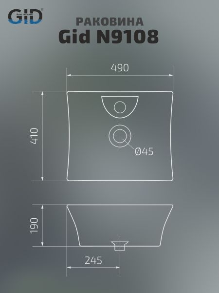 Раковина Gid N9108 51121 накладная белая 49x41x19 купить