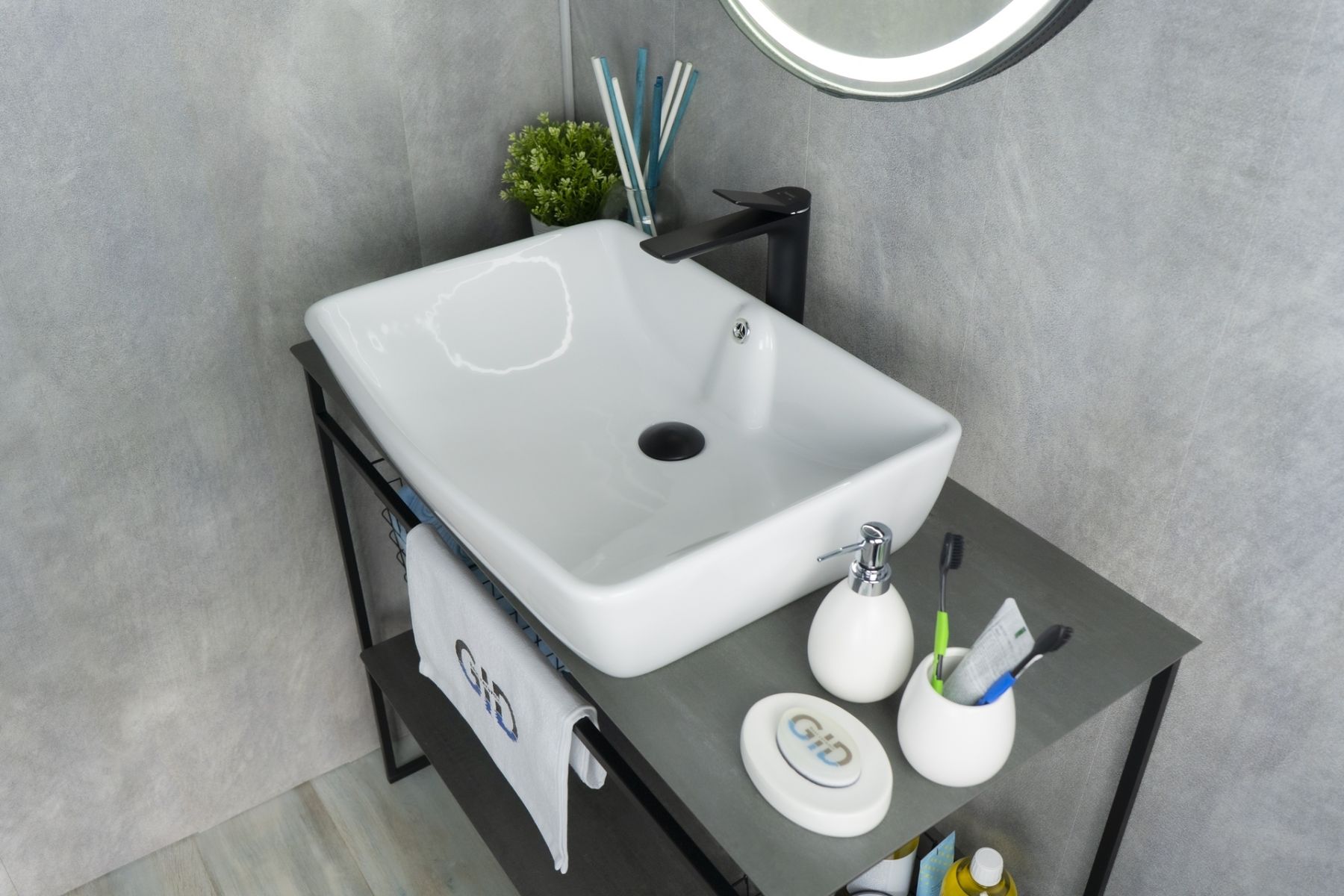 Серия Geometrico с прямоугольной формой: стиль и практичность с испанским качеством и европейскими стандартами. Накладная раковина GiD N9121 — сочетание элегантного дизайна и практичности для вашей ванной комнаты. Изготовлена из мелкопористой керамики с белым глянцевым покрытием, она придаст интерьеру свежесть и утонченность. Прямоугольная форма обеспечивает оптимальное пространство для комфортного использования. Отсутствие отверстия под смеситель подчеркивает минималистичный стиль, а накладной способ монтажа на столешницу облегчает установку и позволяет создать современный облик ванной комнаты.