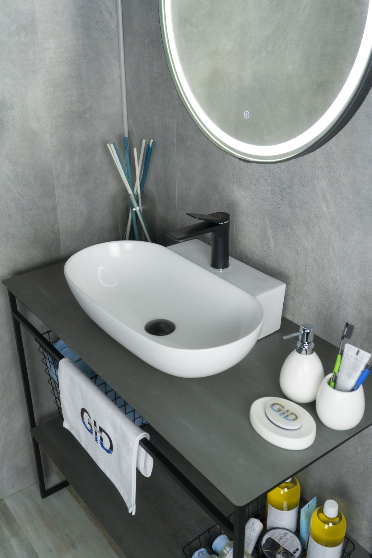 Серия Lago овальной формы — это испанское качество, соответствующее современным европейским требованиям. Раковина накладная GiD N9234 - это стильная, выполненная из высококачественной мелкопористой керамики с белым глянцевым покрытием, что обеспечивает долговечность и легкость в уходе. Овальная форма придает ей гармоничный и элегантный вид, а эргономичная чаша удобна для повседневного использования. Накладная конструкция позволяет легко установить раковину на столешнице, предоставляя дополнительное пространство вокруг. Оснащена отверстием под смеситель, что делает её удобным выбором для современной ванной комнаты.