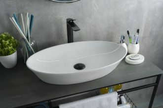 Серия Lago овальной формы — это испанское качество, соответствующее современным европейским требованиям. Накладная раковина GiD N9397 — сочетание элегантного дизайна и практичности для вашей ванной комнаты. Изготовлена из мелкопористой керамики с белым глянцевым покрытием, она придаст интерьеру свежесть и утонченность. Овальная форма обеспечивает оптимальное пространство для комфортного использования. Отсутствие отверстия под смеситель подчеркивает минималистичный стиль, а накладной способ монтажа на столешницу облегчает установку и позволяет создать современный облик ванной комнаты.