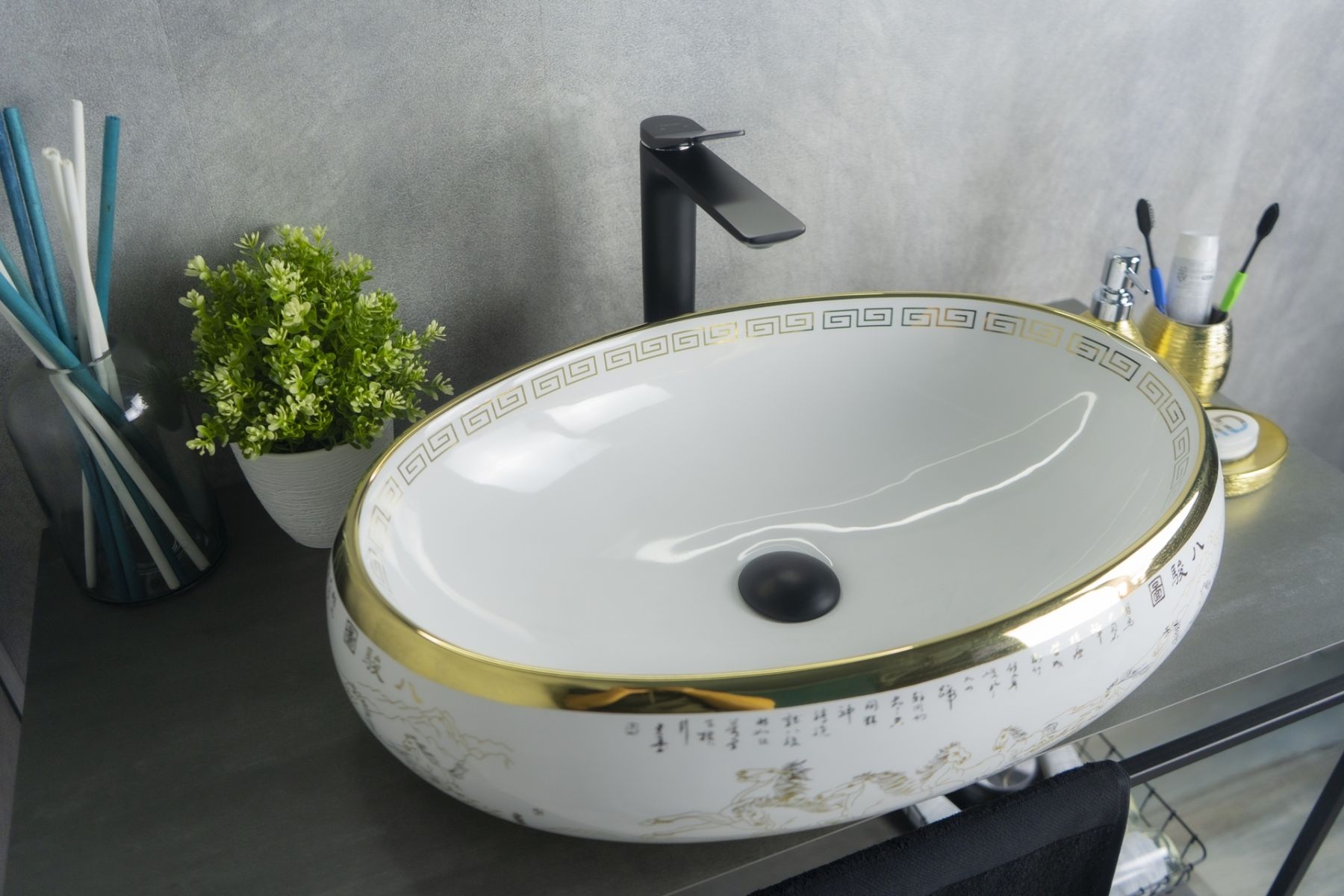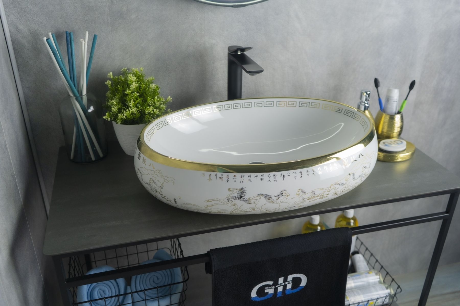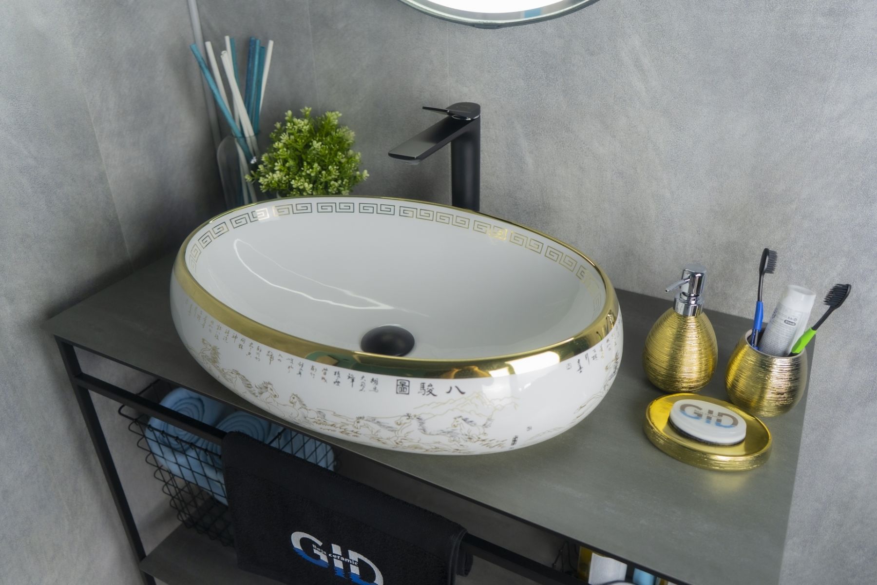 Раковина Gid Nc472 52222 накладная белая / золото 60x41x15 купить