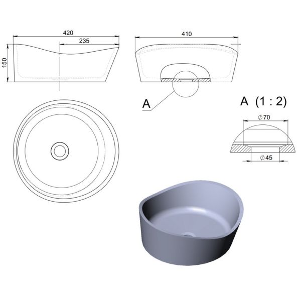 Раковина Holbi Mars 42см цветной матовый 1.02.003.11.3