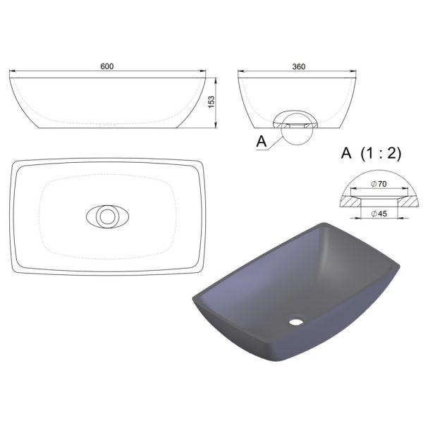 Раковина Holbi Titan 60см бетон 2.02.010.44.4