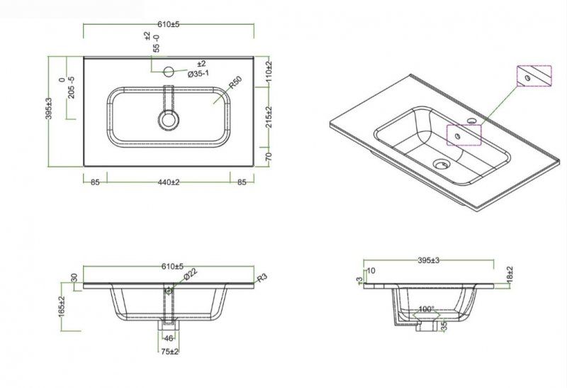 Керамическая раковина 60х40см, белаяРаковина сифоном не комплектуется