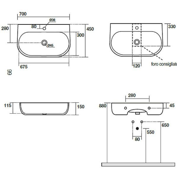 Раковина Kerasan Nolita 534201*1 белая 70 смХарактеристики:Цвет: белый.