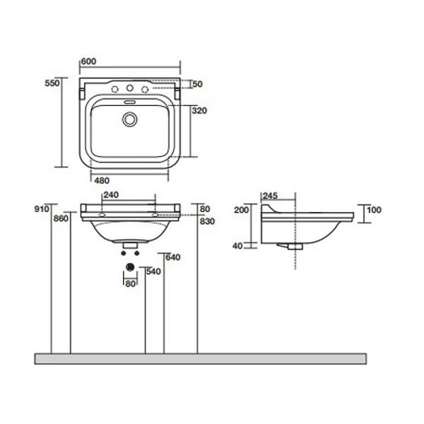 Раковина Kerasan Waldorf 4140K1bi/cr*3 Белая 60 смХарактеристики:Цвет: белый.