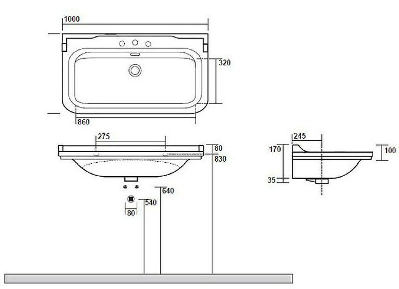 Раковина Kerasan Waldorf 4142K1bi/cr*3 Белая 100 смХарактеристики:Цвет: белый.