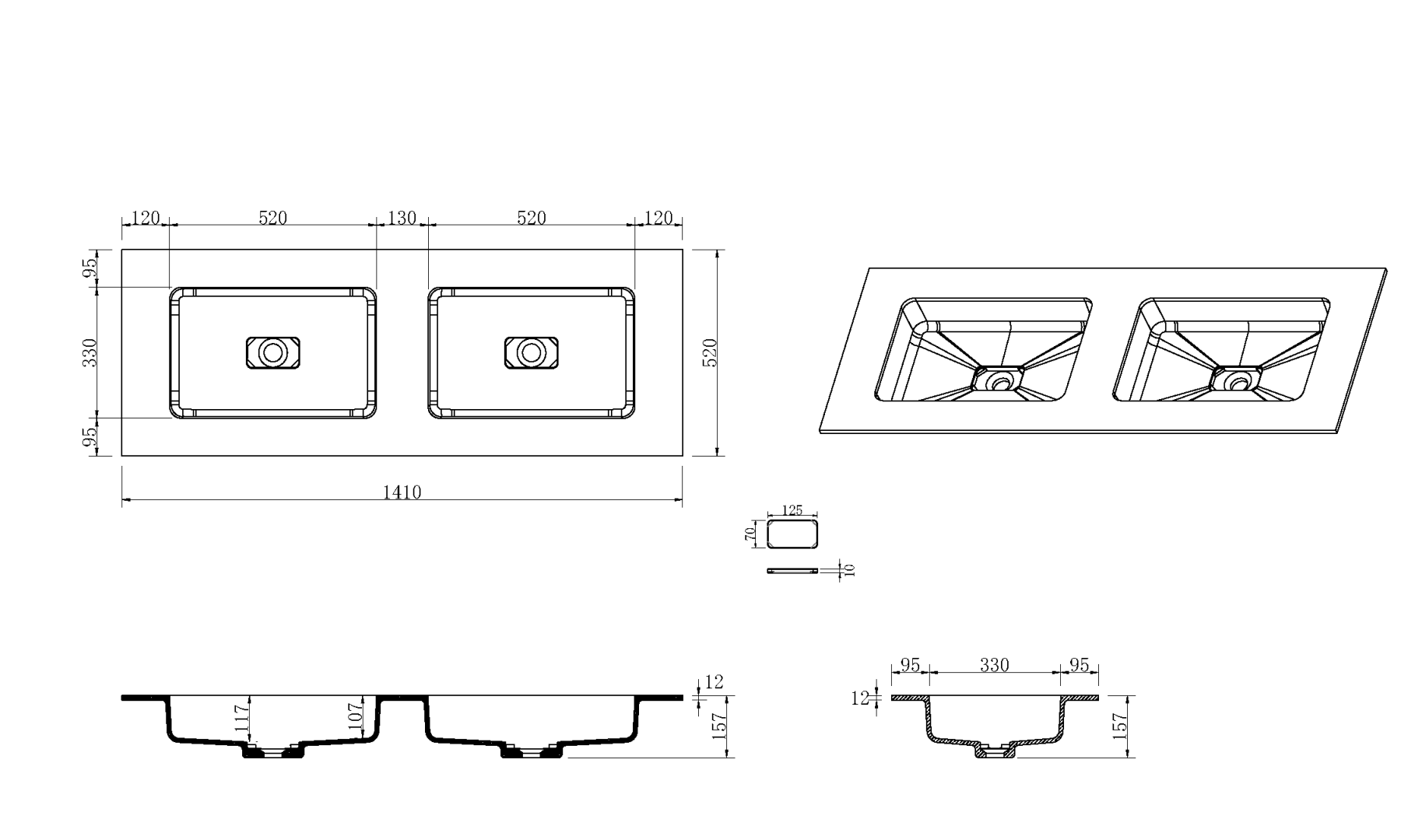 • Габариты (ШхВхГ): 1410х157х520 мм..