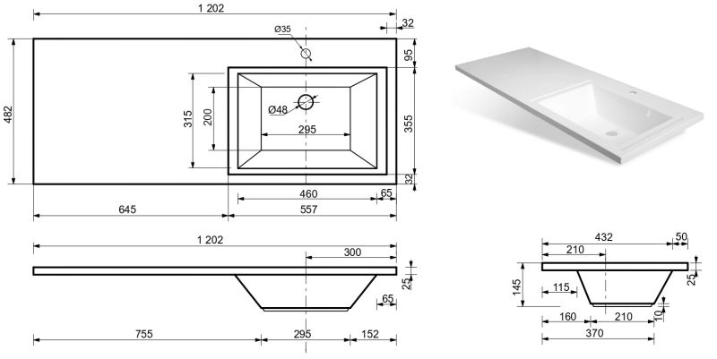 Раковина над стиральной машиной Эстет Даллас ФР-00001528 П 120см белый