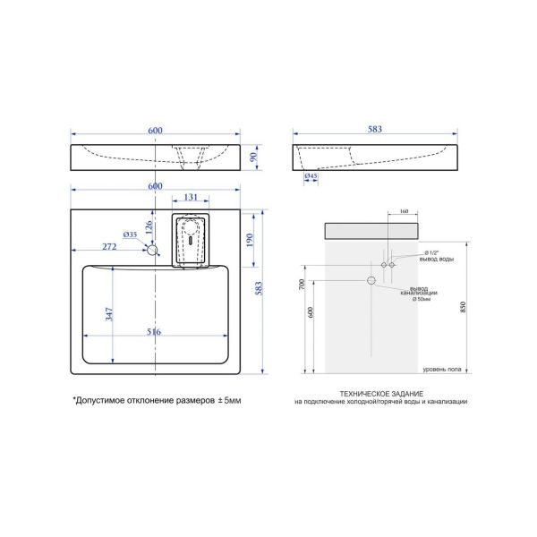 • Отверстия под смеситель: