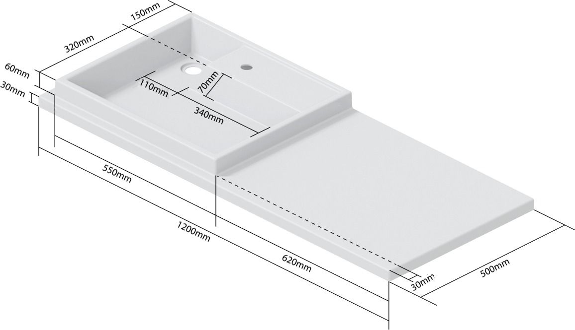 Раковина над стиральной машиной СанТа Юпитер 900124 120см левая белый