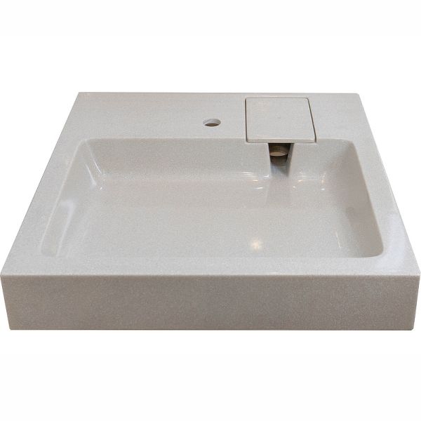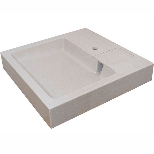 Раковина в ванную комнату для установки над стиральной машинкой бежевого цвета. Крепится на кронштейны, которые входят в комплект поставки. Верхний слой высококачественного гелькоута образует декоративно-защитное покрытие.