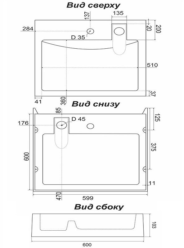 • Отверстия под смеситель: