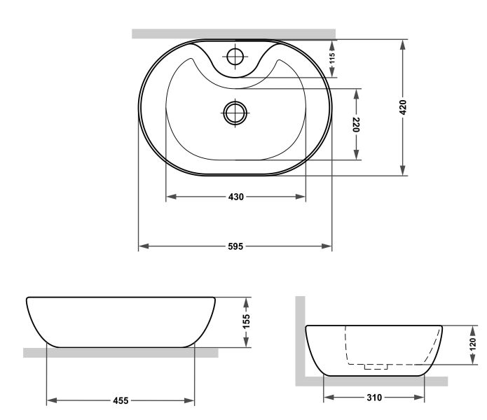 Ширина раковины: 59,5 см