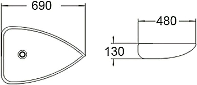 Раковина керамическая SL-1033, 69 х 48 х 13 см, накладная без перелива