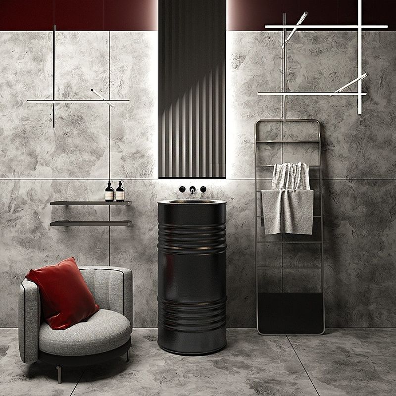 Раковина напольная Kerasan Artwork Barrel 4742K31 45см слив в пол чёрный матовый купить